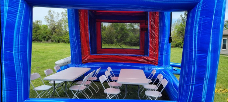 - OCCUPANCY: A maximum of 5-6 kids of equal size at one time for bounce houses, and 1 person at a time for slides is what most inflatable manufacturers recommend.